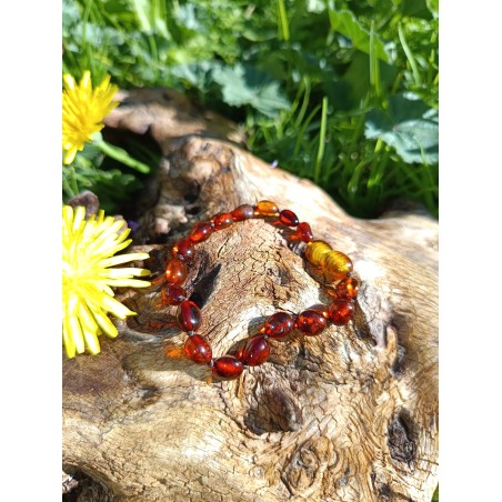 Bracelet bébé ambre à fermoir à vis , couleur cognac