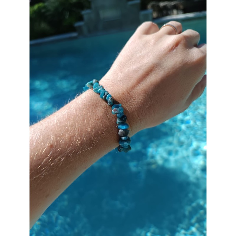Les chips d’apatite apportent une touche artisanale moderne, nature et bohème au poignet, idéale pour les amateurs de pierres naturelles et d’accessoires de bien-être.