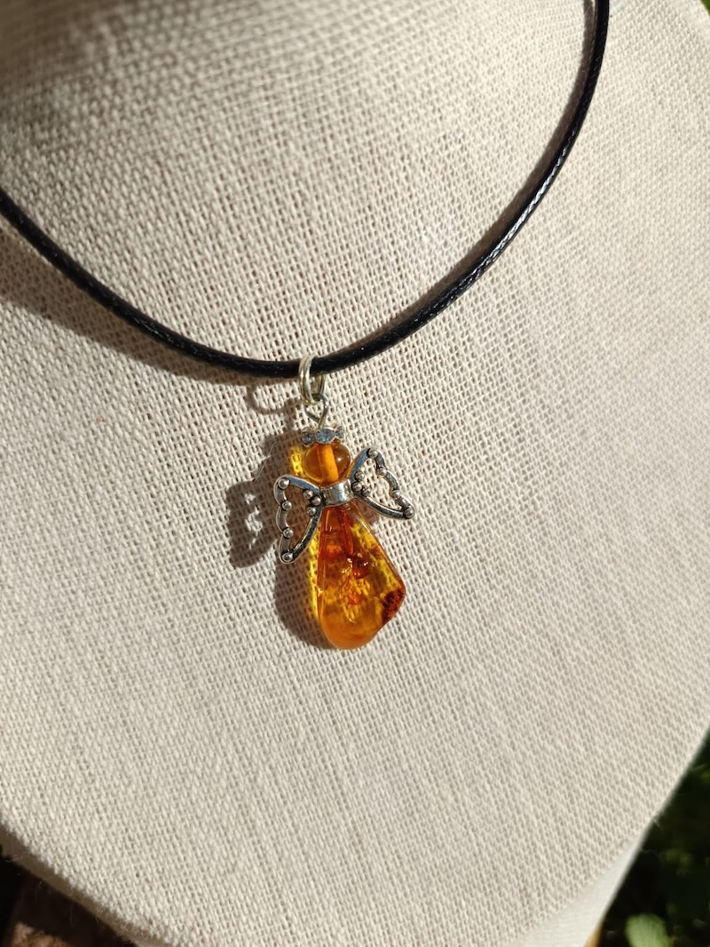 Pendentif Ange en ambre couleur miel- Protection et douceur