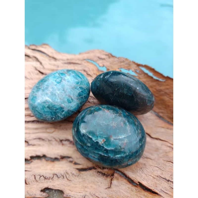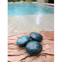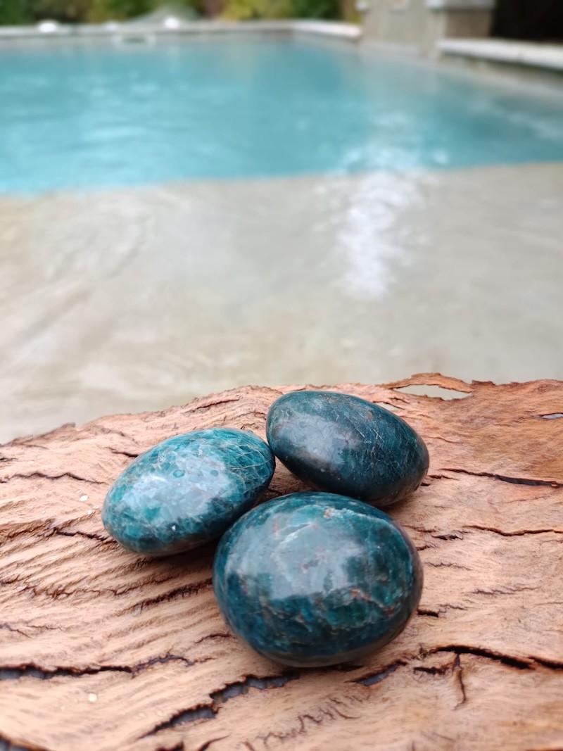 Formé dans les roches métamorphiques, ce galet poli met en valeur la transparence et la richesse de l’apatite, pierre associée au chakra de la gorge et au troisième œil. En lithothérapie, elle favorise l’expression sincère, stimule la communication et aide à dépasser les blocages émotionnels liés aux non-dits.