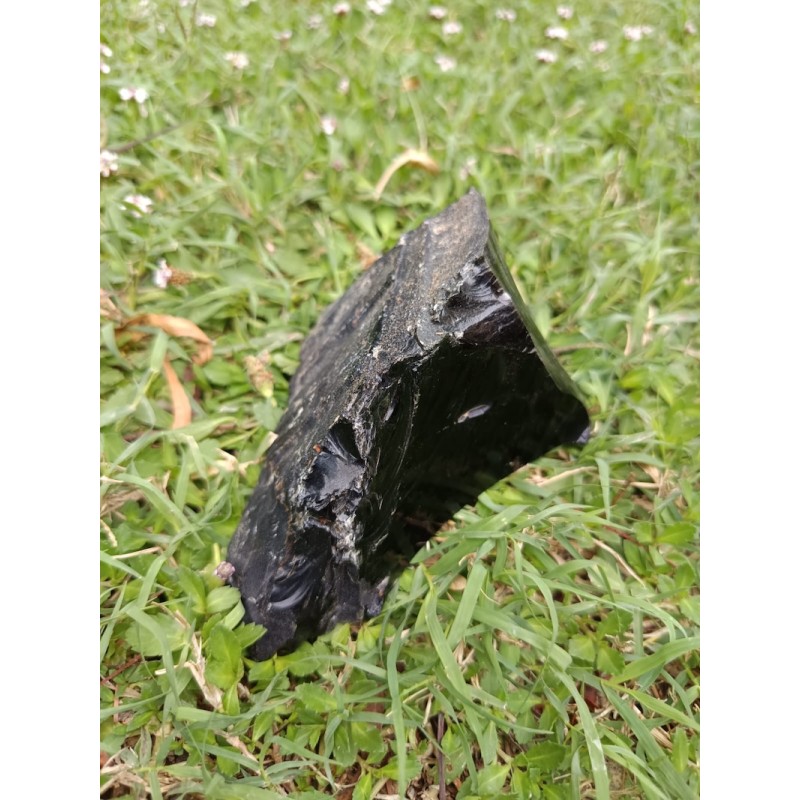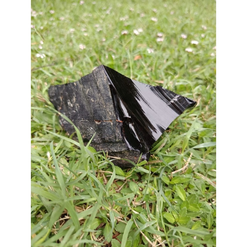 Bloc brut d’obsidienne noire du Mexique, poids 390 grammes. Pierre naturelle, unique, idéale pour la protection des lieux ou la décoration minérale
