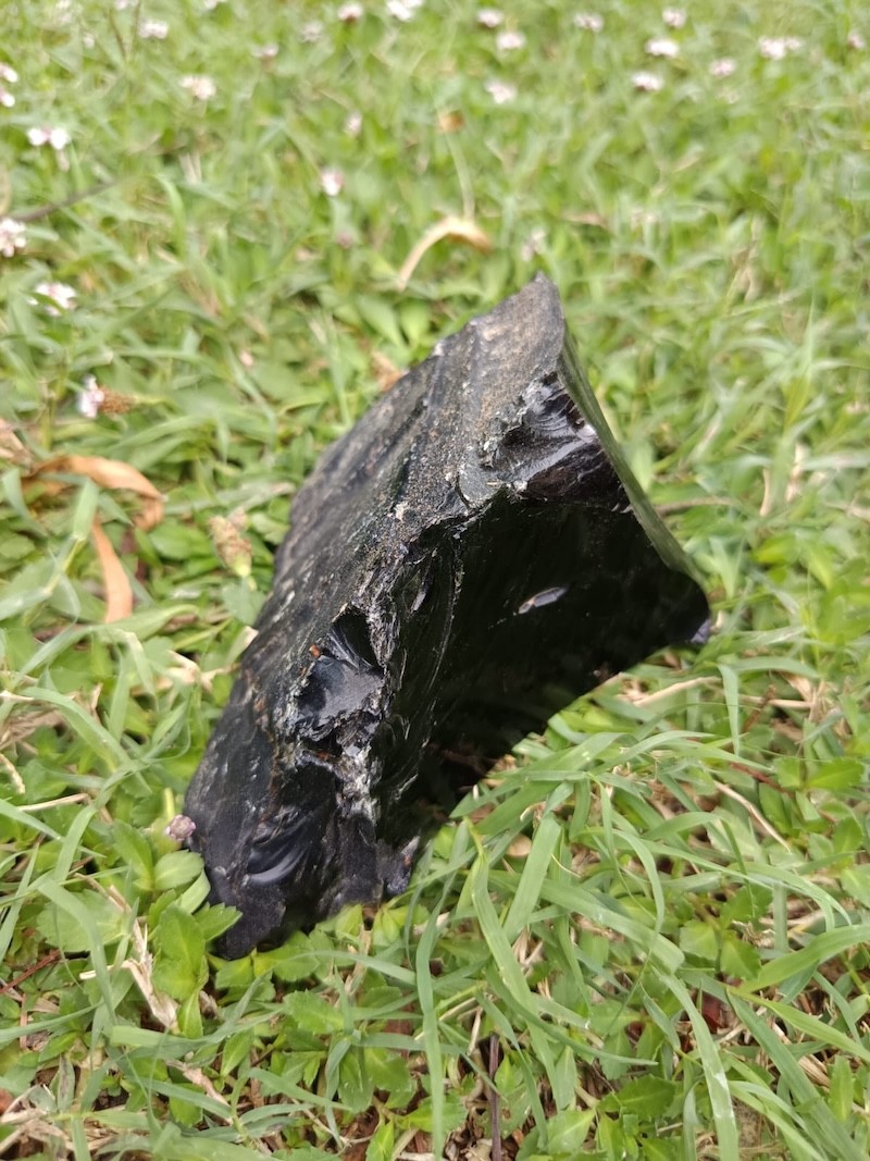 Ce bloc d’obsidienne brute, pesant 390 grammes, provient directement des gisements volcaniques du Mexique. L’obsidienne est un verre volcanique naturel composé majoritairement de silice, formé lors d’une éruption de lave qui a refroidi très rapidement.