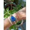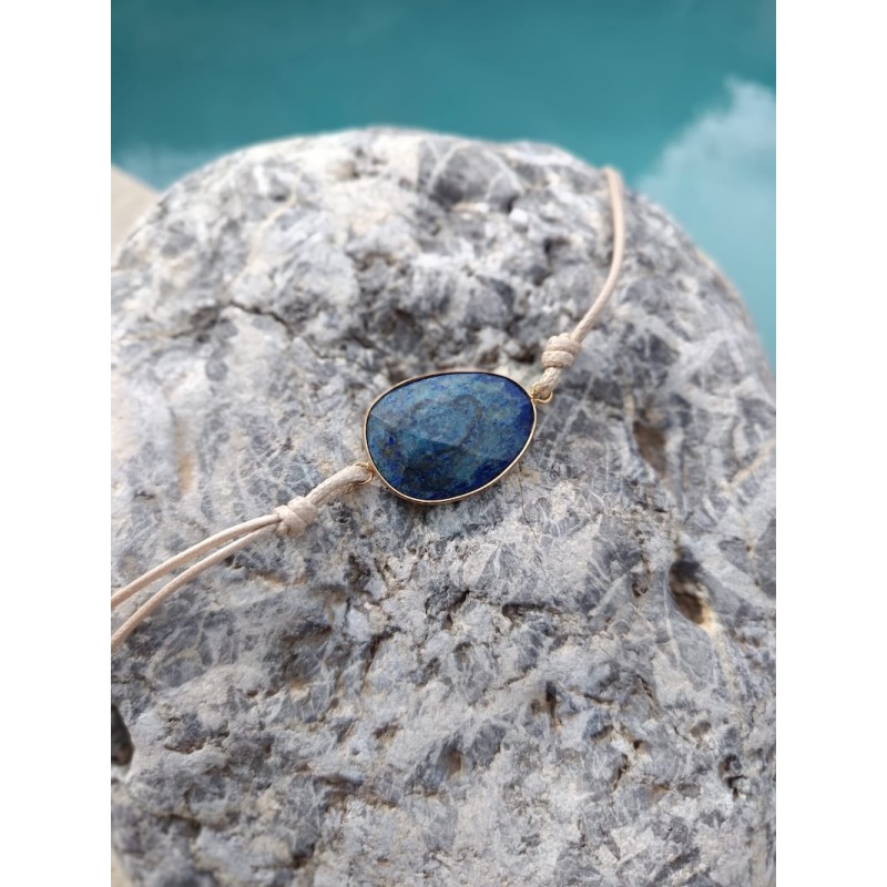 Bracelet Cuir Naturel & Cabochon Lapis-Lazuli véritable- Mixte, Fait main