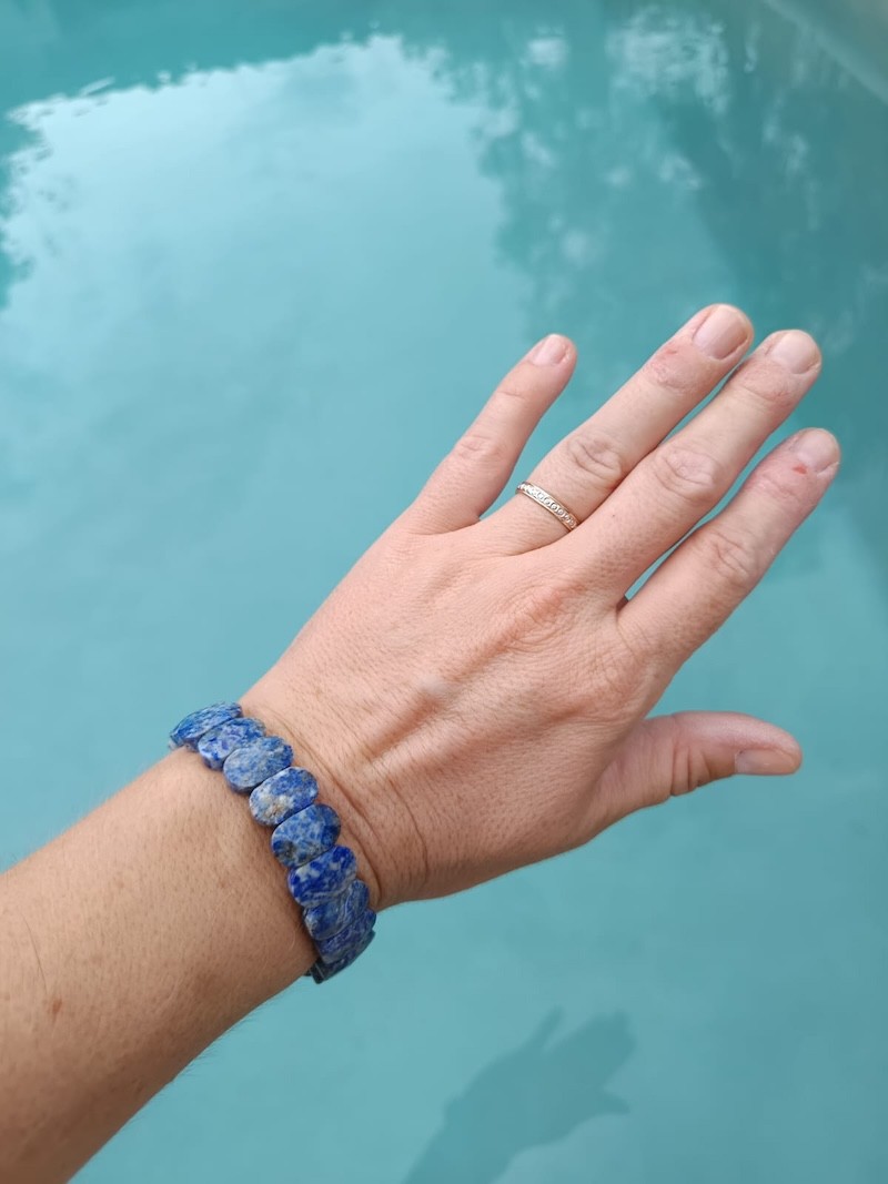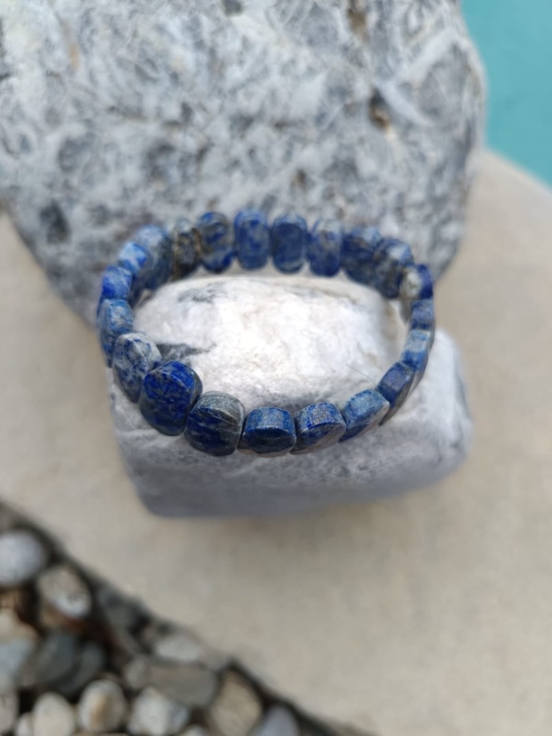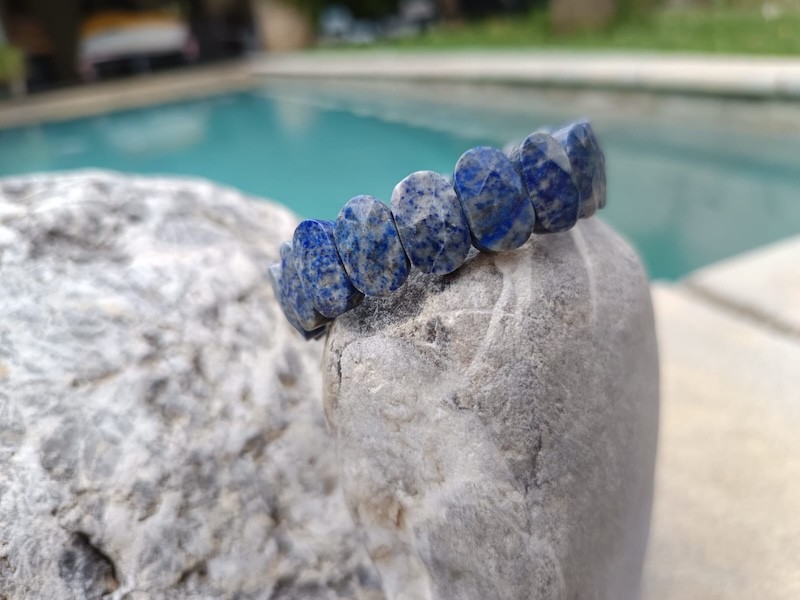 Laissez-vous charmer par ce bracelet en lapis-lazuli, confectionné avec des perles ovales facettées pour une brillance unique. Le lapis-lazuli, pierre naturelle d'un bleu intense, est reconnu pour ses vertus en lithothérapie : il favorise la confiance en soi, développe l’intuition et encourage la communication. Ce bijou s’adapte facilement à tous les styles grâce à ses perles taillées aux facettes qui captent la lumière. Parfait pour offrir ou pour accessoiriser ses tenues, ce bracelet lapis-lazuli sera votre allié bien-être au quotidien.