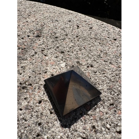 Découvrez la pyramide de Shungite, une pierre rare et unique originaire de Russie, façonnée ici en une élégante pyramide de 4 x 4 cm.