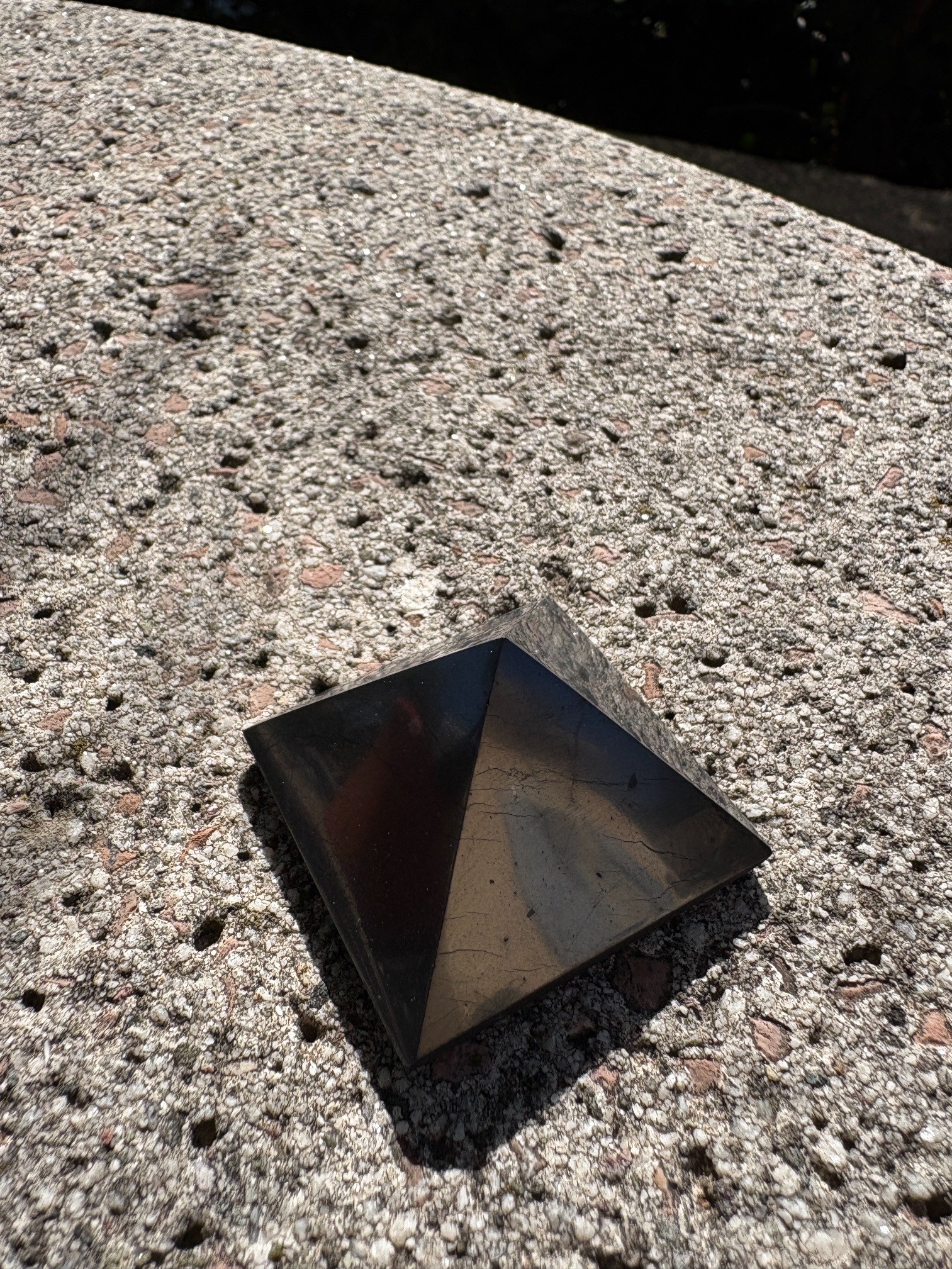 Pyramide de Shungite de 4 x 4 cm, une pierre protectrice et harmonisante reconnue pour ses incroyables vertus énergétiques et de protection des ondes électromagnétiques