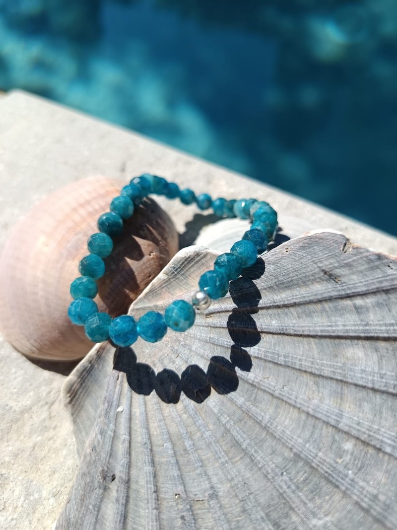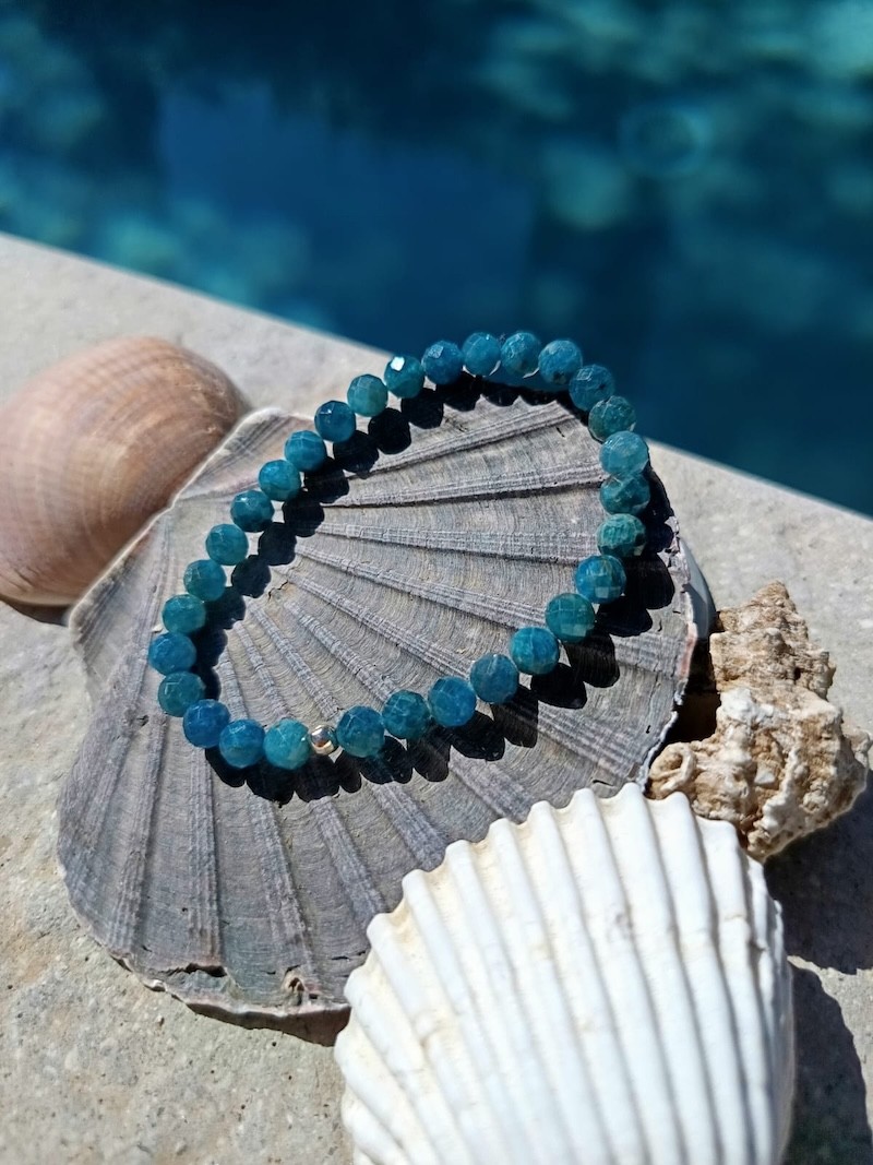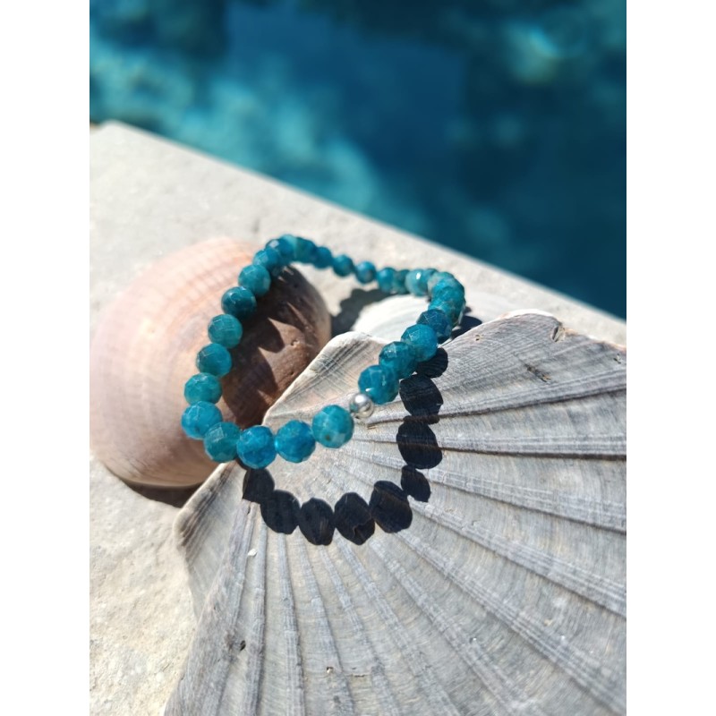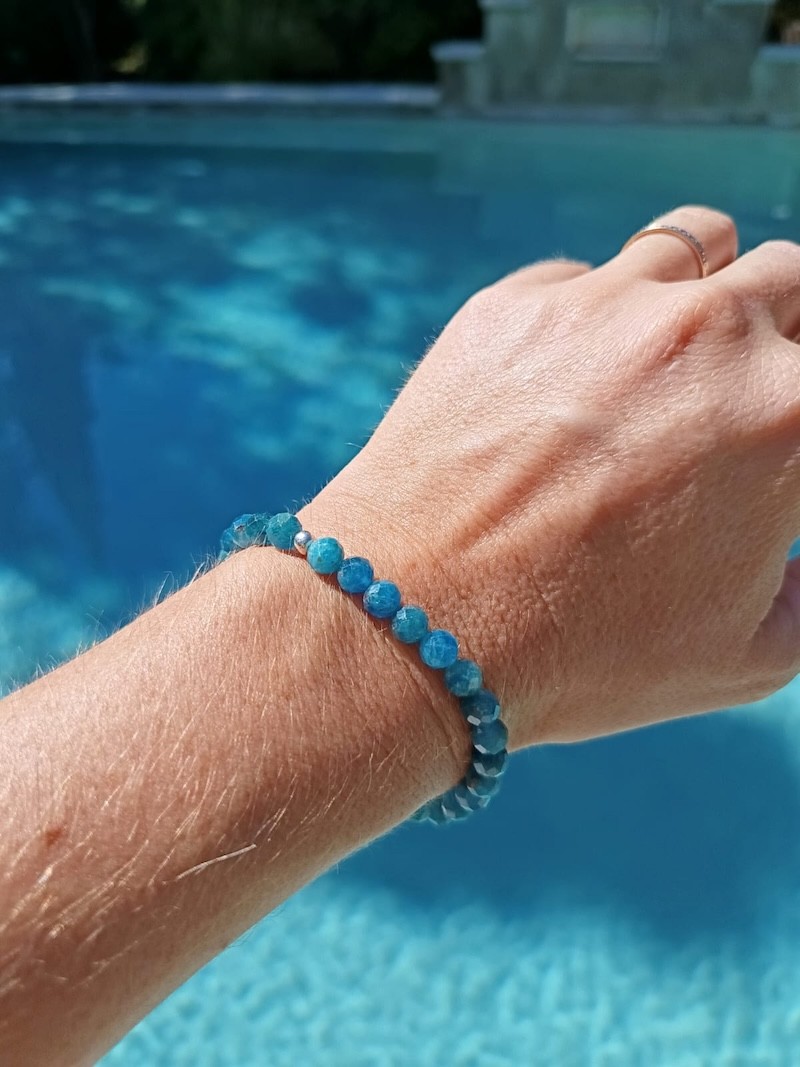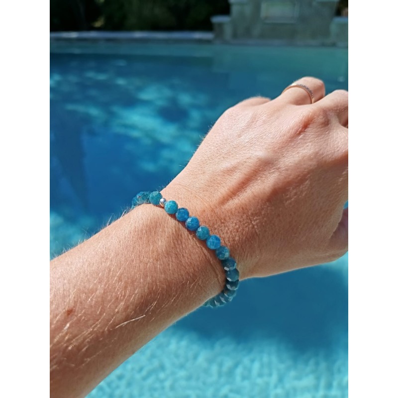 Bracelet élégant en apatite naturelle aux perles facettées de 6 mm, monté sur élastique. Un bijou alliant beauté minérale et vertus apaisantes pour le bien-être au quotidien.