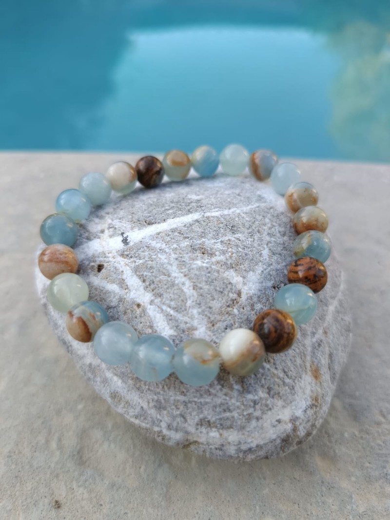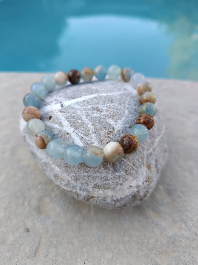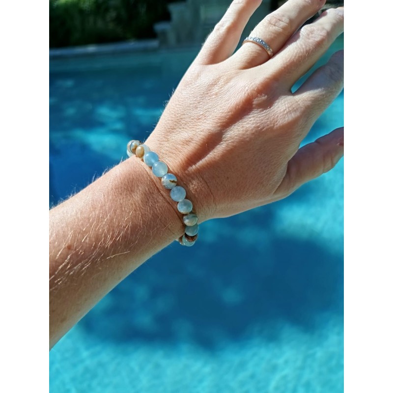 Bracelet en Calcite Bleue 8 mm – Pierre Anti-Stress et Harmonie Intérieure