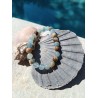 Purifiez votre bracelet sous l’eau claire (évitez l’eau salée), puis rechargez-le à la lumière douce de la lune ou sur une géode d'améthyste. Conservez-le à l’abri du soleil direct et des chocs pour préserver sa teinte apaisante.