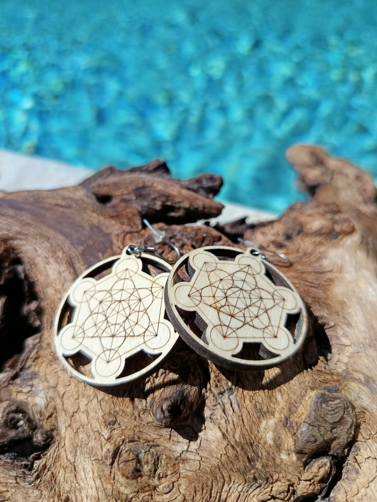Boucles d’Oreilles Bois Cube de Métatron – Géométrie Sacrée & Protection Énergétique