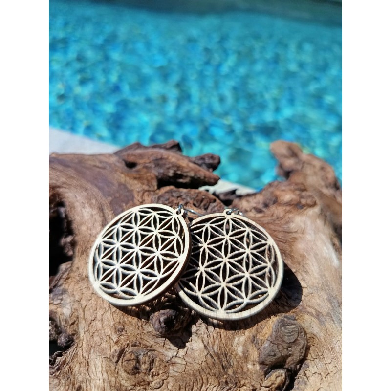 Boucles d’Oreilles Bois Fleur de Vie – Géométrie Sacrée & Vitalité
