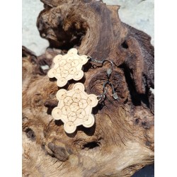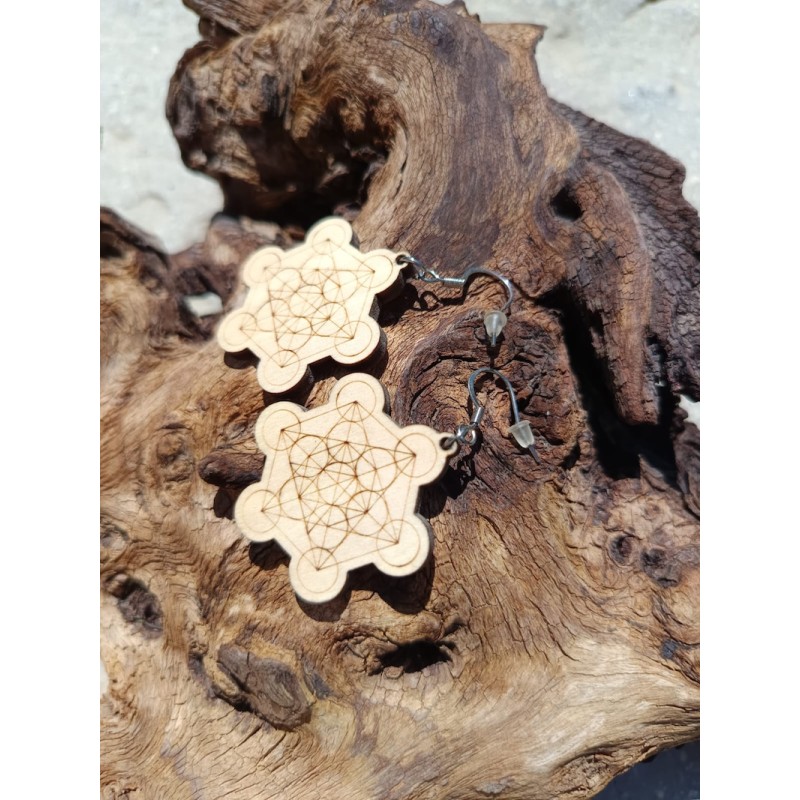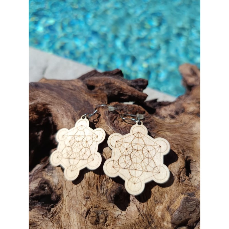 Boucles d’oreilles Métatron en bois naturel – Fabrication française artisanale – Énergie de protection et d’harmonisation