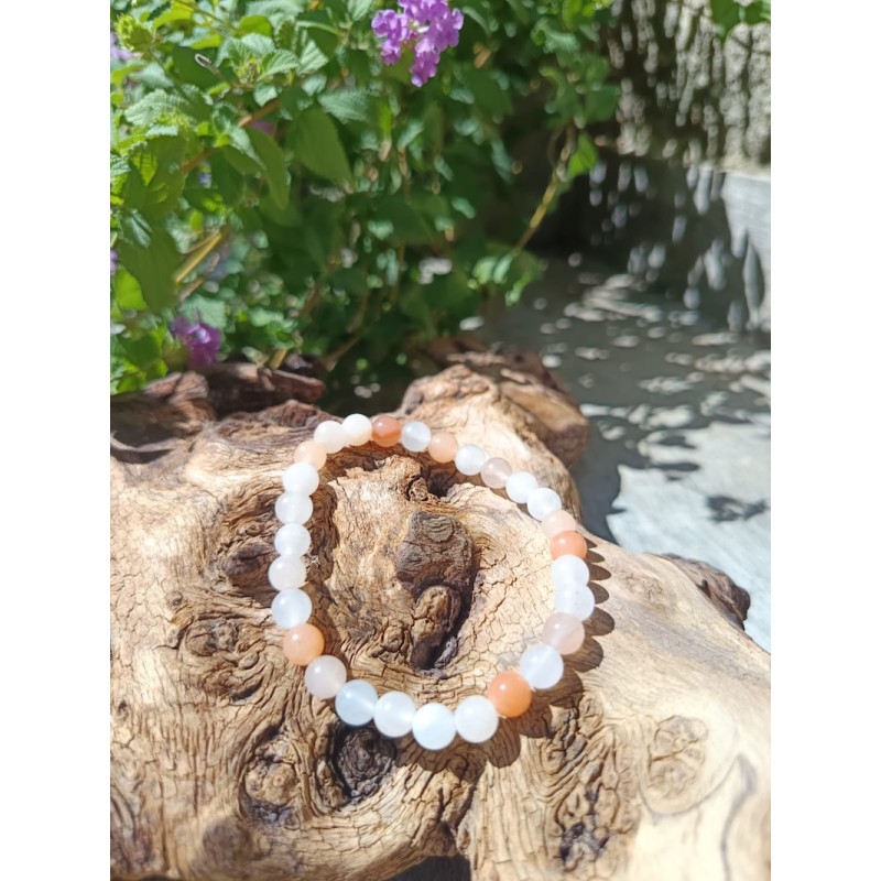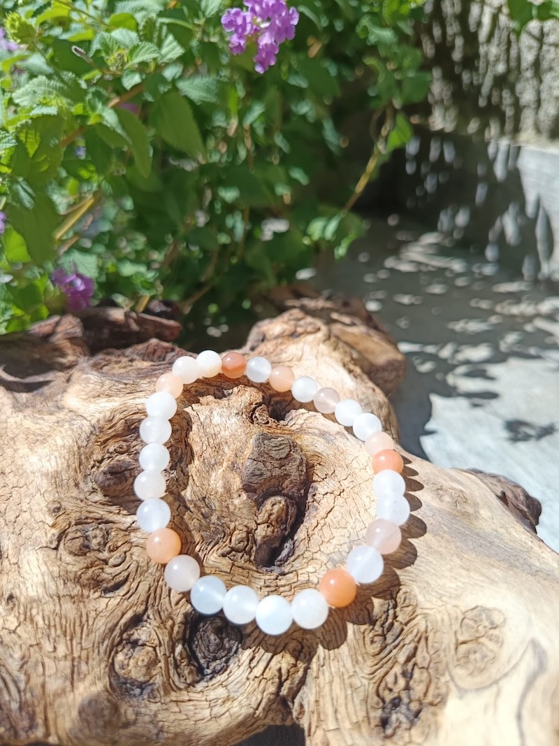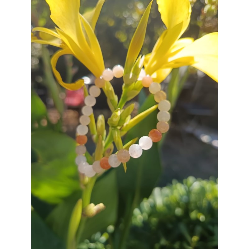 Ce bracelet en Calcite Orange Miel, composé de perles de 6 mm, diffuse une énergie solaire et revitalisante.