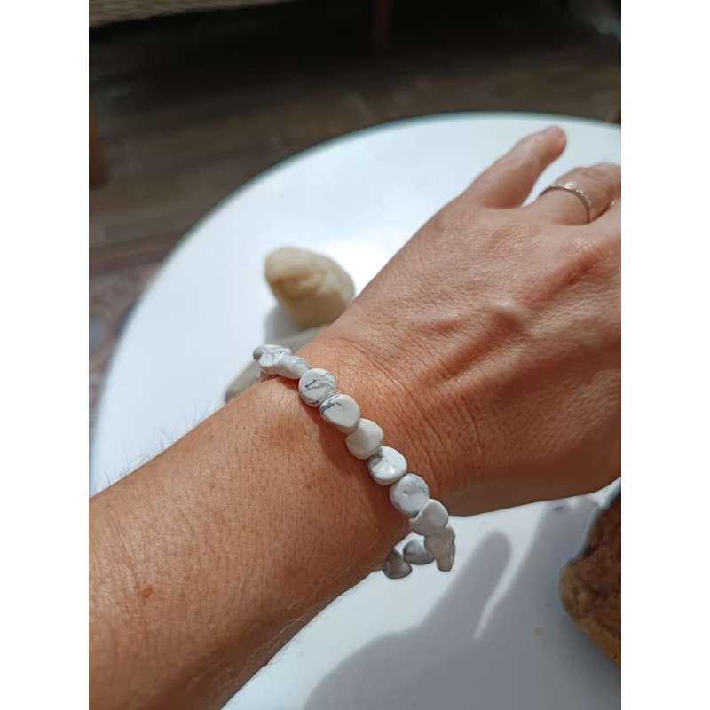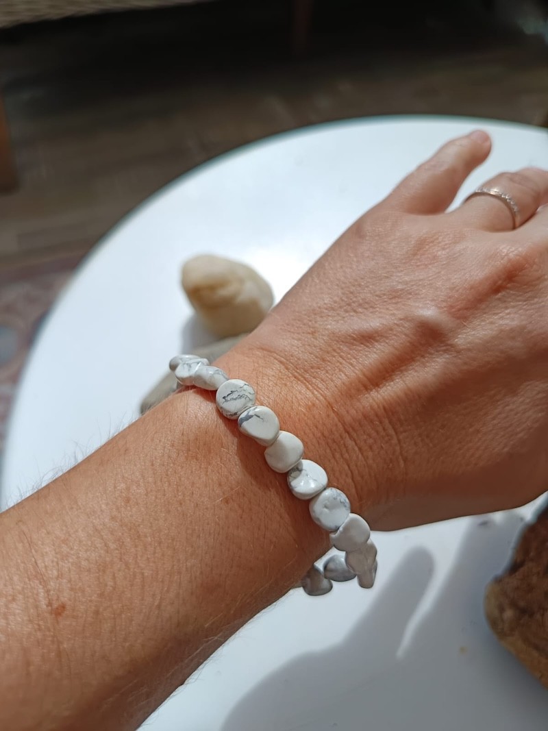 Bracelet en Howlite blanche, perles roulées 8 mm. Pierre d’apaisement et de sérénité mentale, idéale pour calmer le stress.
