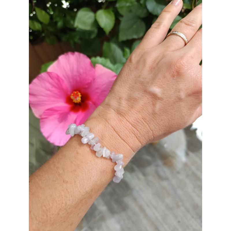 Ce bracelet en Kunzite naturelle, composé de pierres baroques aux formes libres, dégage une énergie douce et apaisante.