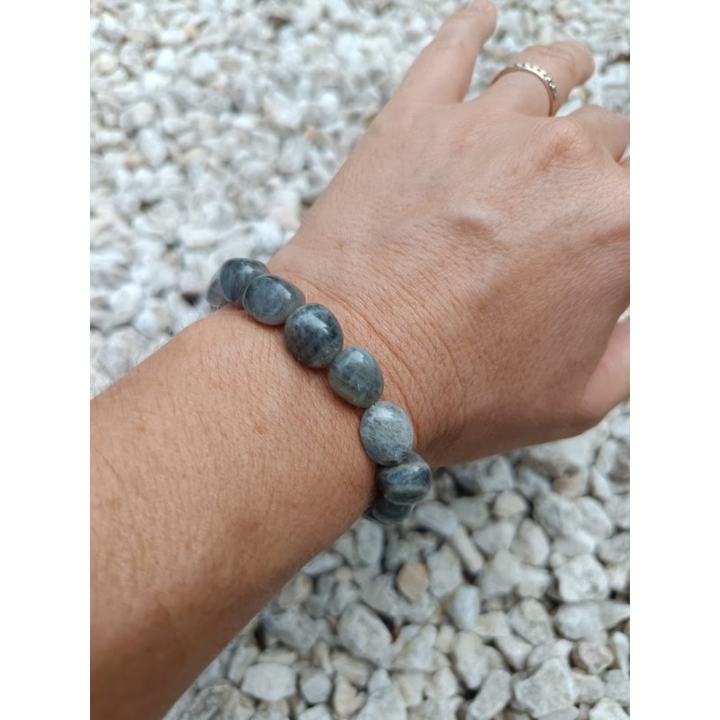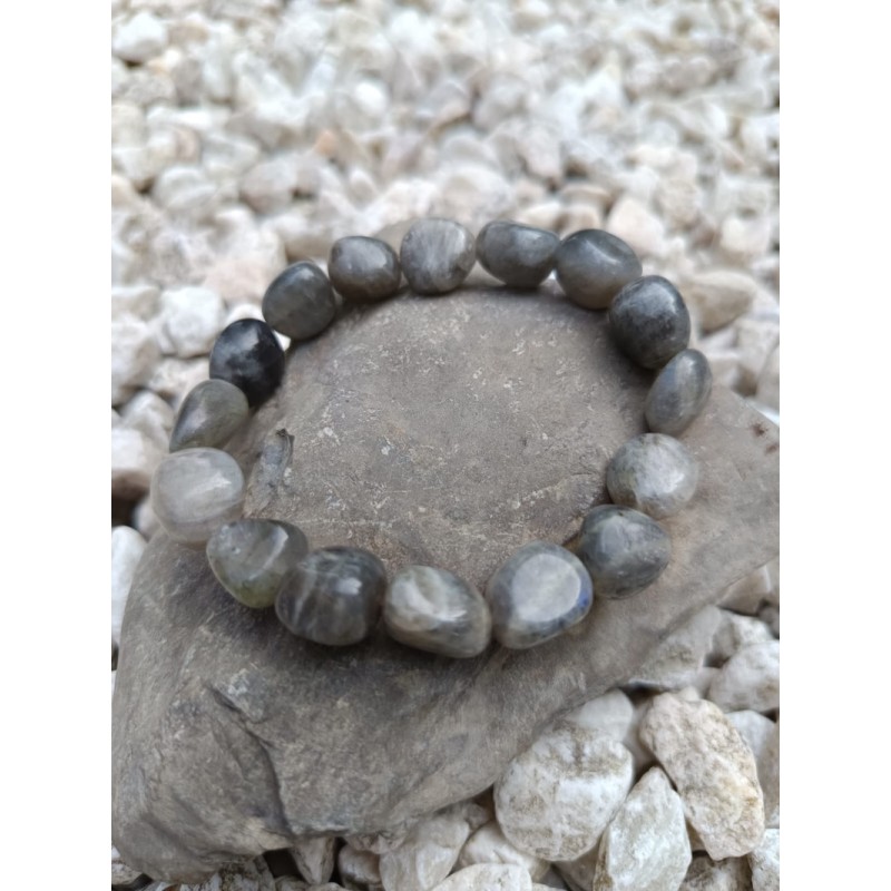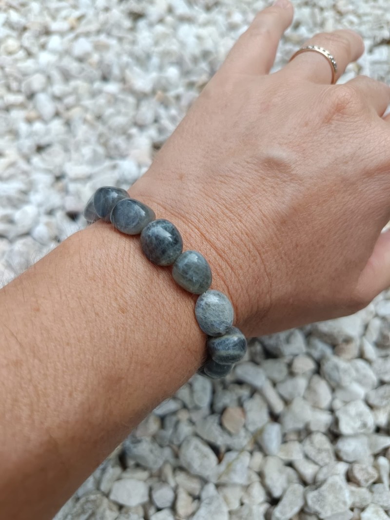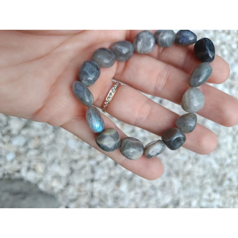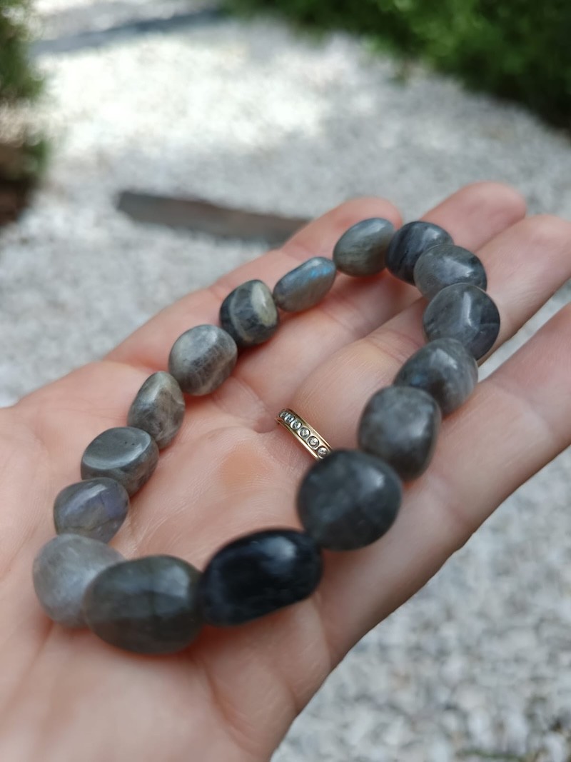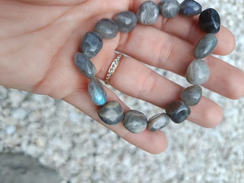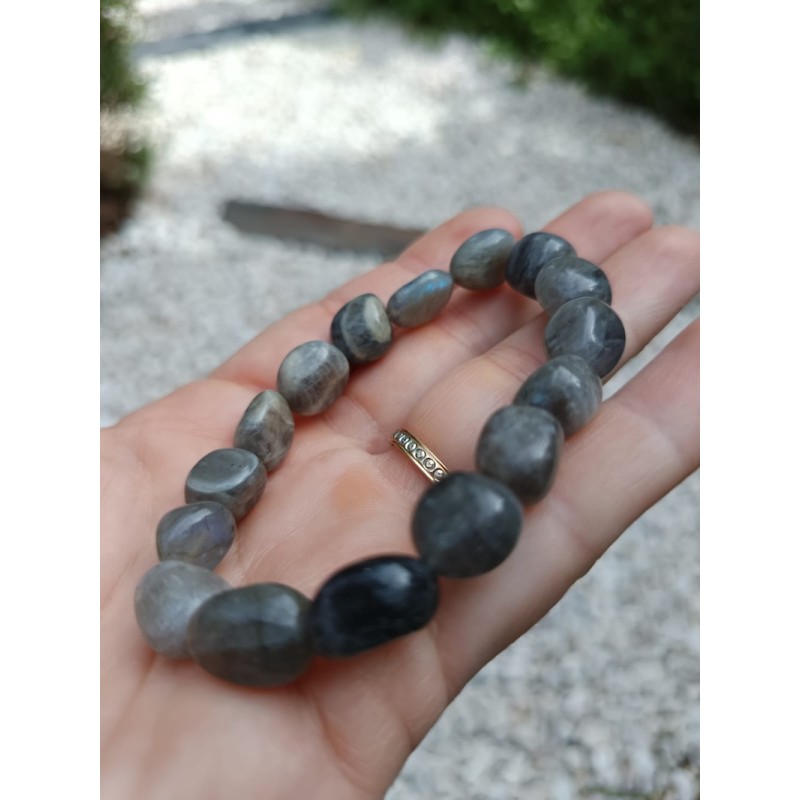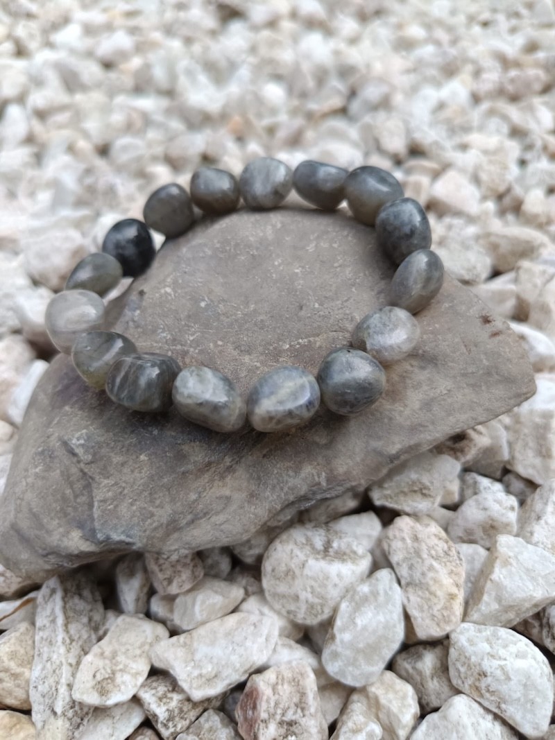 Ce bracelet en Labradorite naturelle présente des pierres roulées (nuggets) soigneusement sélectionnées pour leur éclat et leurs reflets chatoyants.