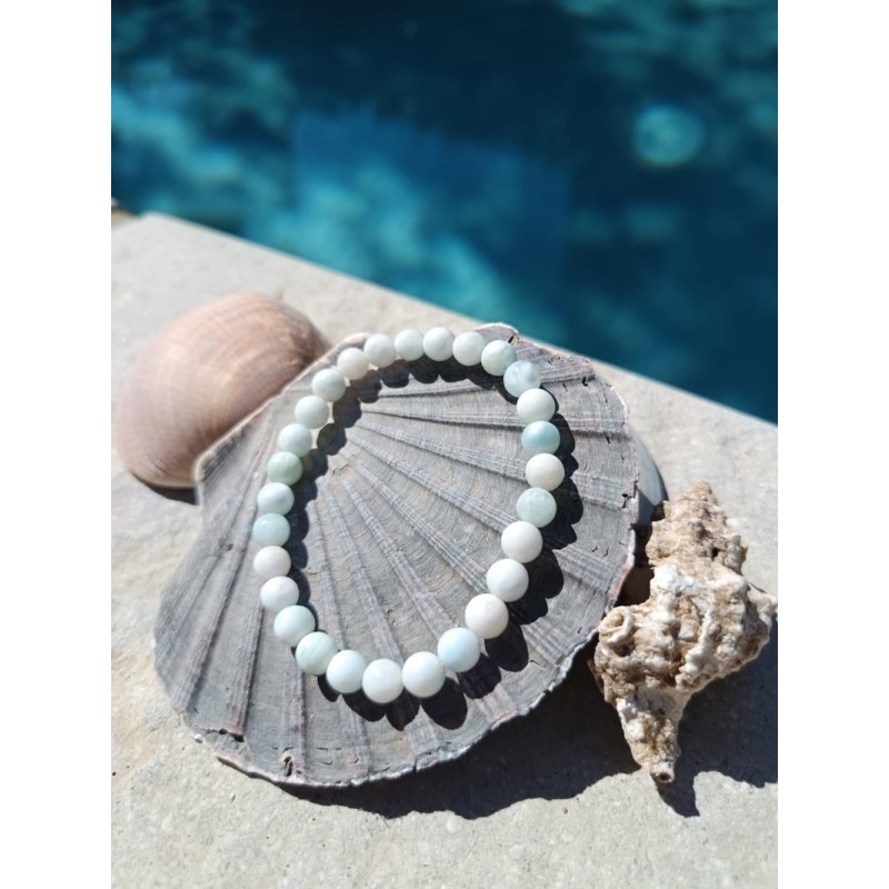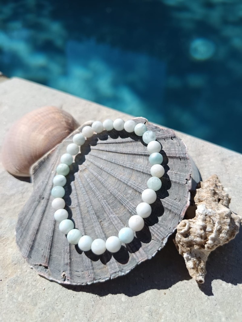 Ce bracelet en Larimar naturel 6 mm, qualité AB, reflète toute la douceur et la pureté de cette pierre apaisante.
