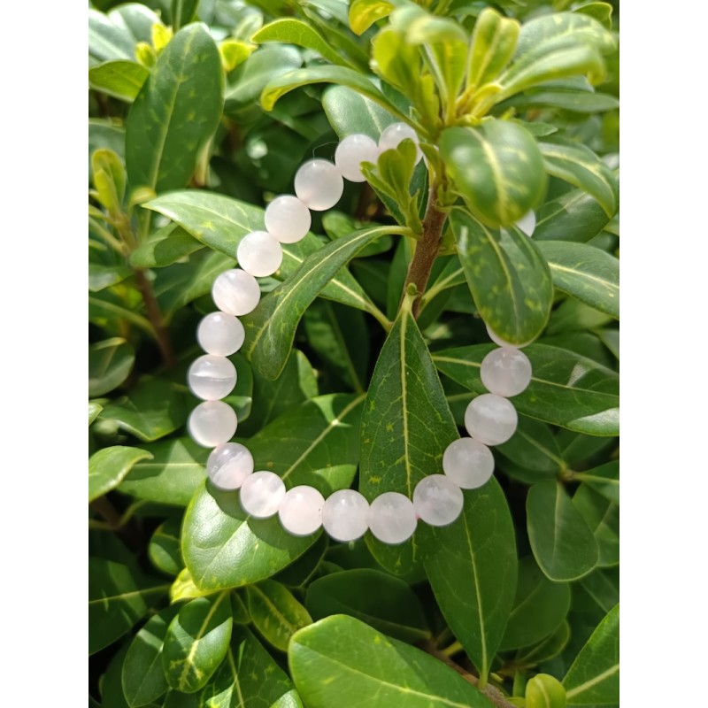 Ce bracelet en Manganocalcite naturelle, perles de 8 mm, diffuse une énergie tendre et apaisante.