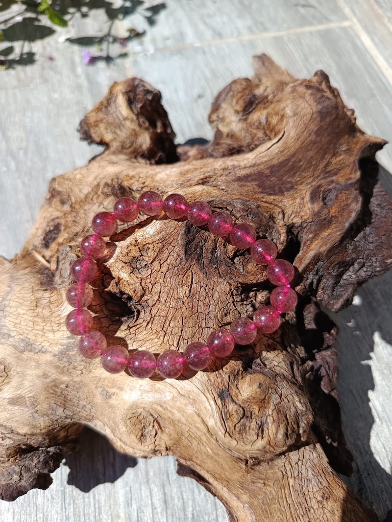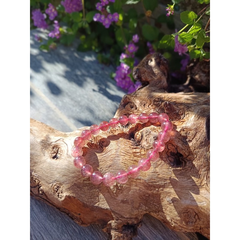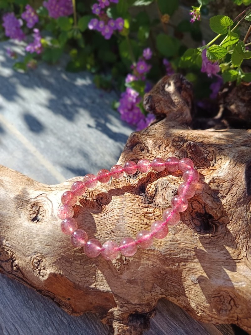 Bracelet Quartz Fraise Hématoïde 8 mm – Amour, énergie et ancrage du cœur