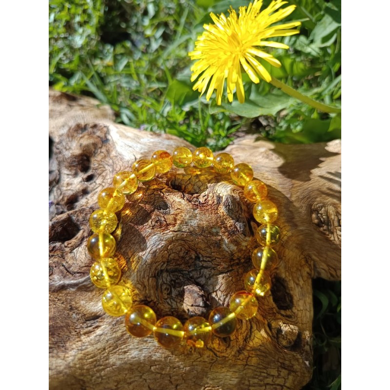 Ce bracelet en ambre clair véritable, perles de 8 mm, rayonne une énergie douce, solaire et purifiante.