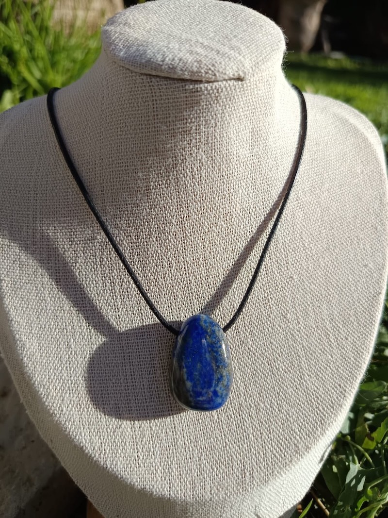 Ce pendentif en Lapis-Lazuli naturel, pierre percée à porter sur cordon, stimule la clarté mentale, la communication et l’intuition.