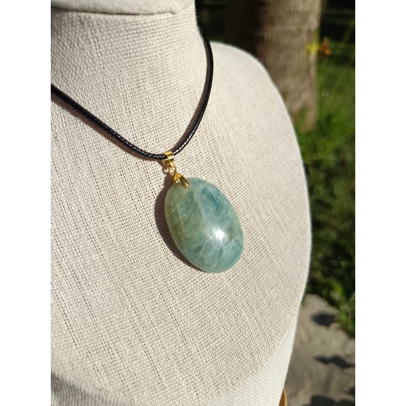 Ce pendentif en Aigue-Marine naturelle est un bijou empreint de douceur et de sérénité.