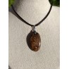 Magnifique pendentif en Bronzite naturelle polie aux reflets dorés et bronzés chatoyants. Pierre ovale montée sur monture argentée et cordon noir tressé réglable. Pierre d'ancrage, de confiance en soi et de protection énergétique. Pièce unique.