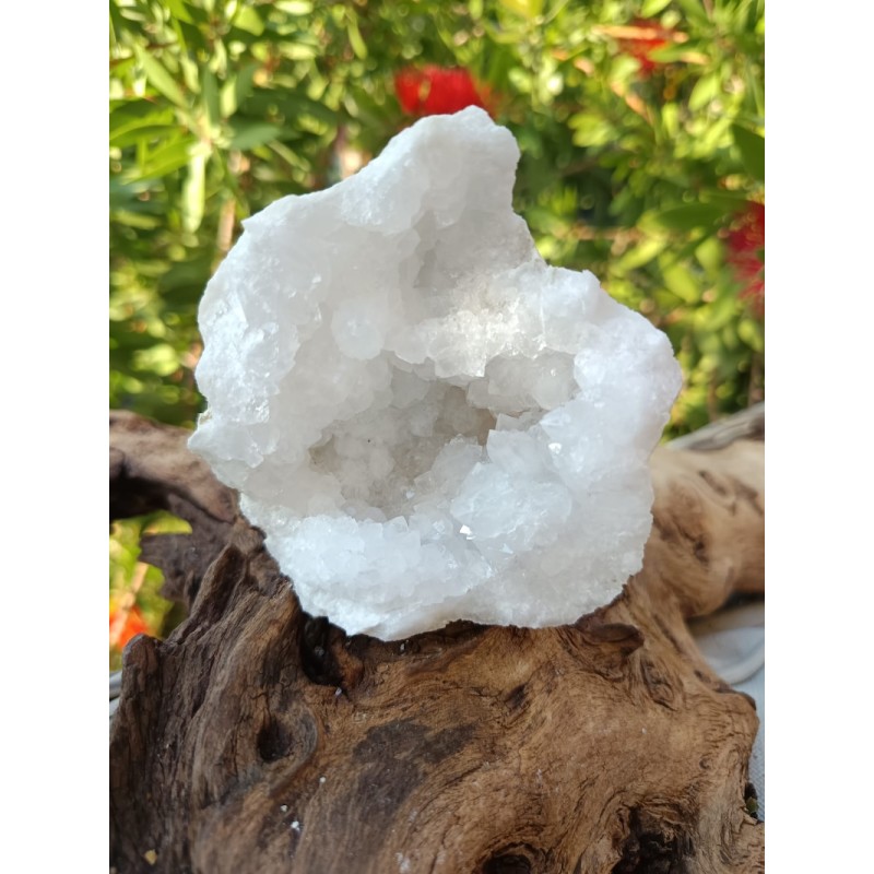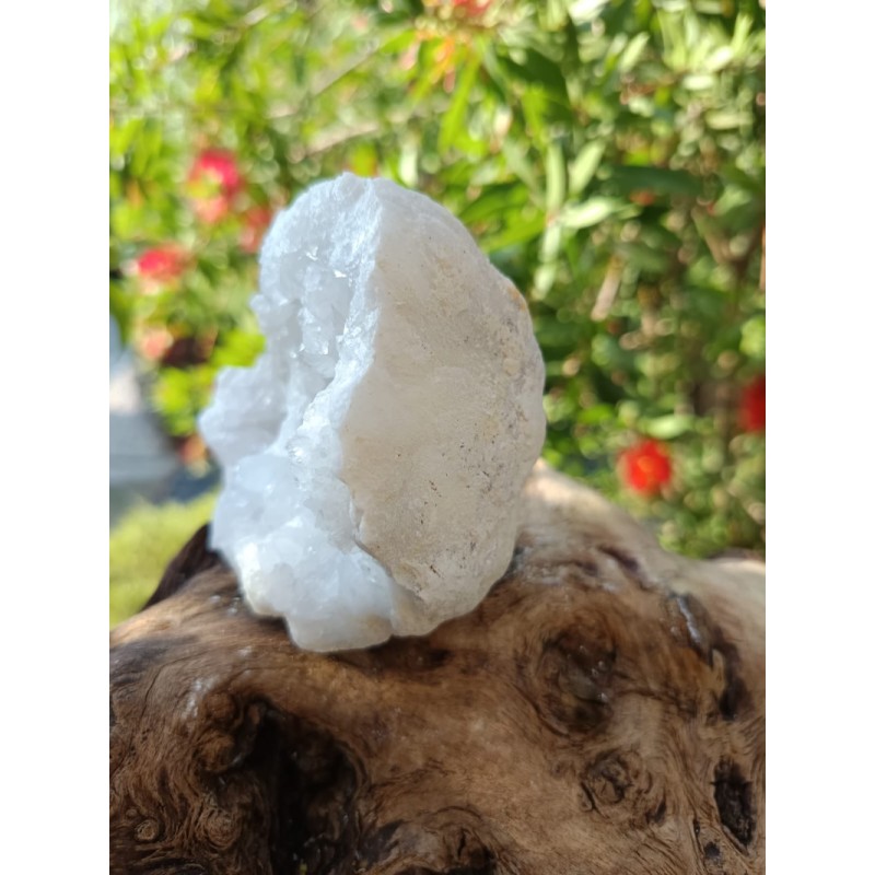 Protection : Traditionnellement, les géodes de cristal de roche sont également considérées comme des amulettes protectrices, aidant à éloigner les énergies négatives et à renforcer les défenses énergétiques de la personne ou de l'espace environnant.