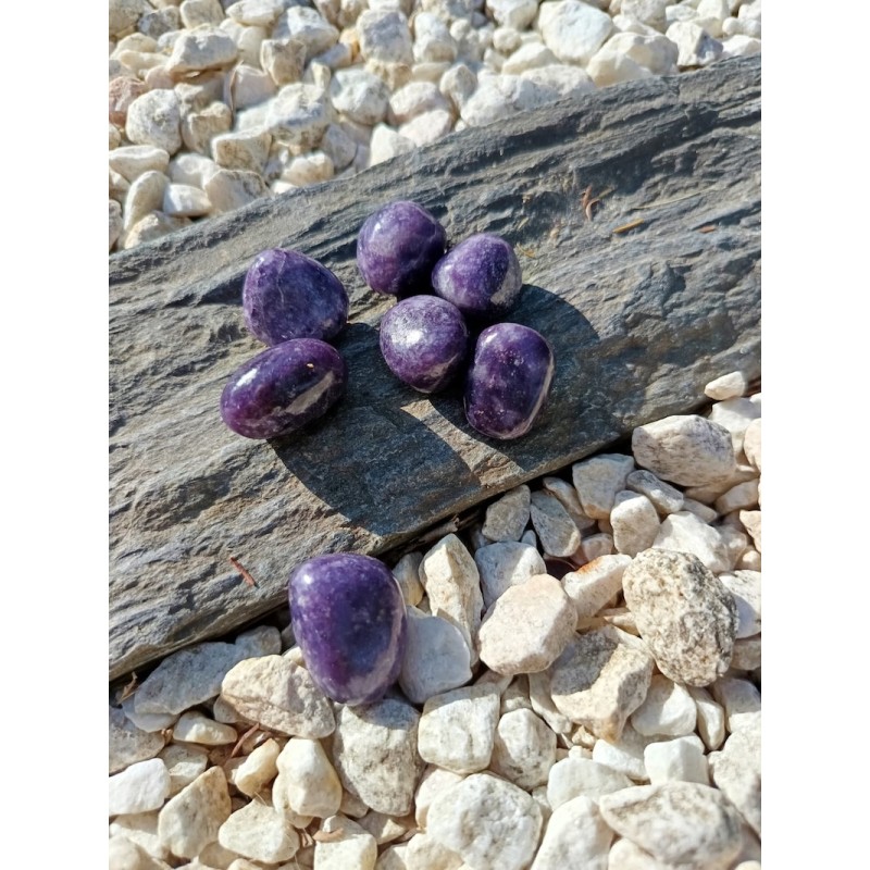 La Lépidolite , pierre d'un magnifique violet- rose est une pierre très riche en lithium . Elle apporte une sensation de bien être, que ce soit au niveau physique que mental .