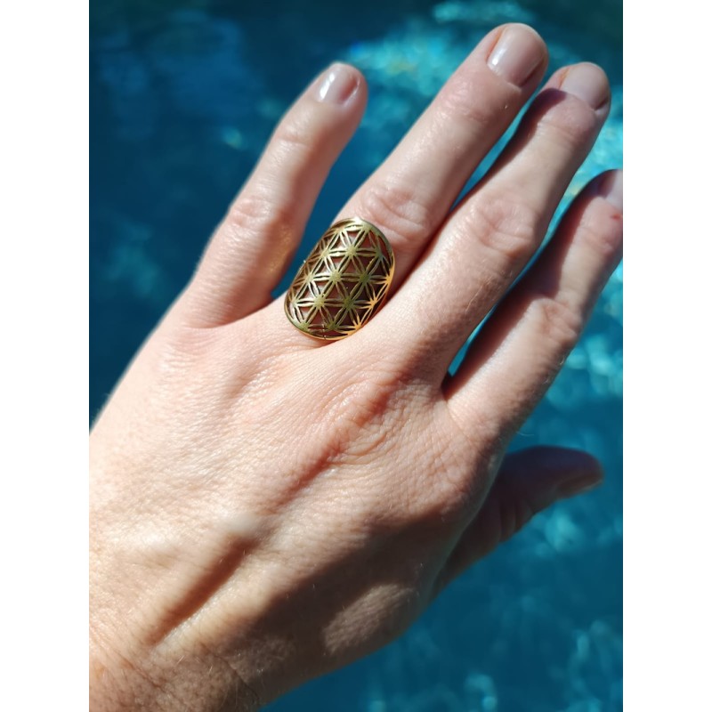 Bague Fleur de vie - Inox plaqué Or