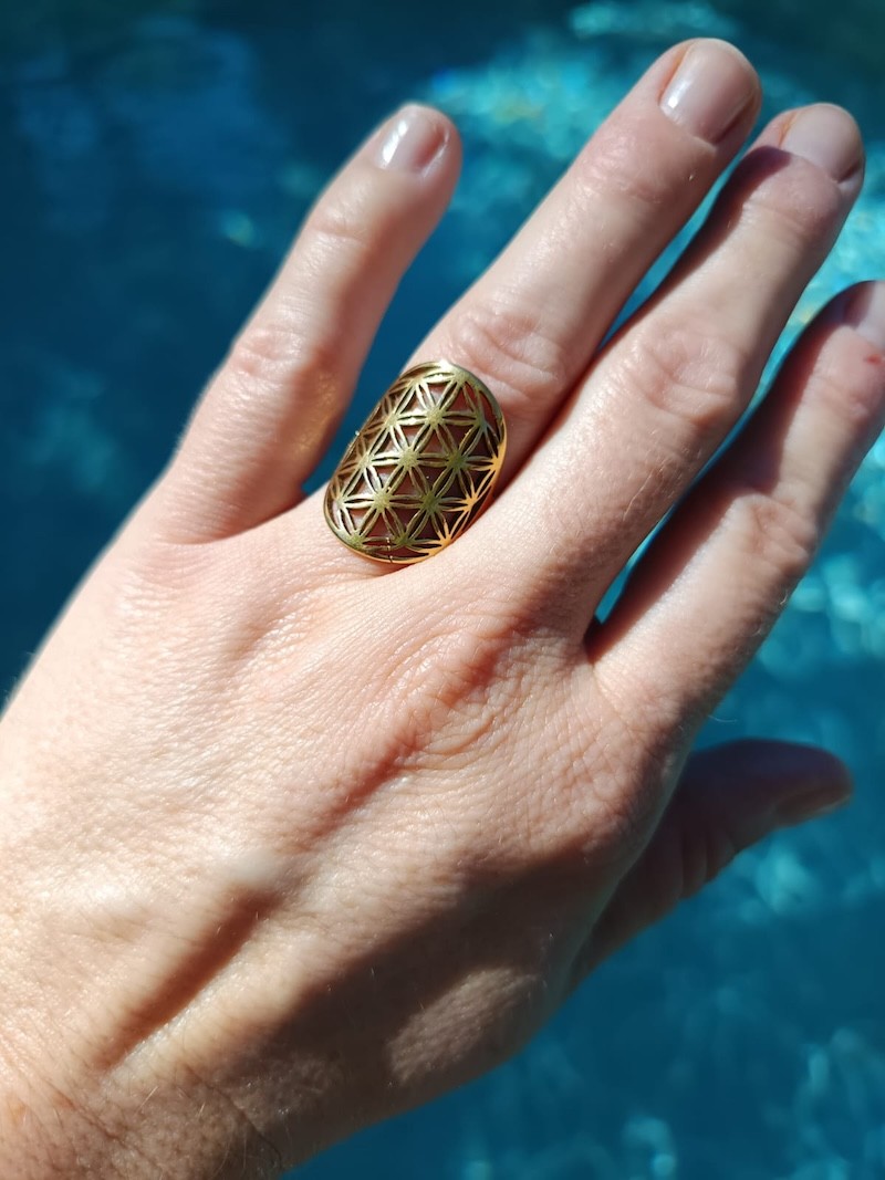 Porter cette bague au motif de la fleur de vie, c'est revêtir un symbole de beauté, d'harmonie et de spiritualité. C'est se souvenir de la perfection qui réside dans chaque aspect de la vie et célébrer la connexion sacrée entre toutes les formes d'existence.