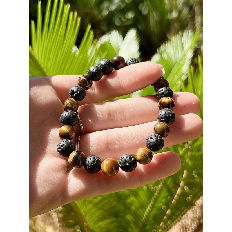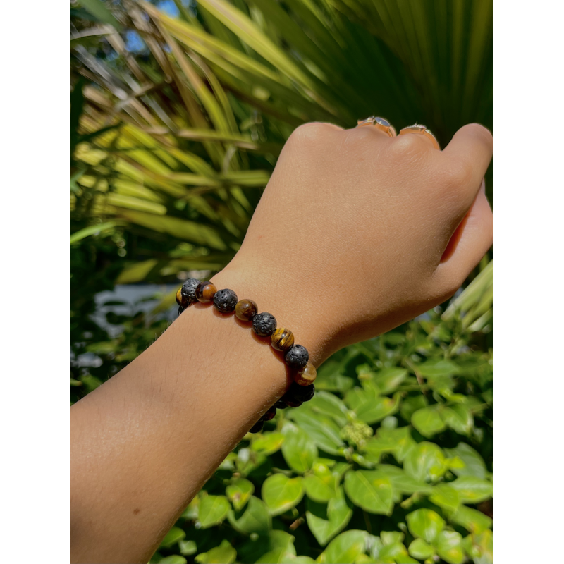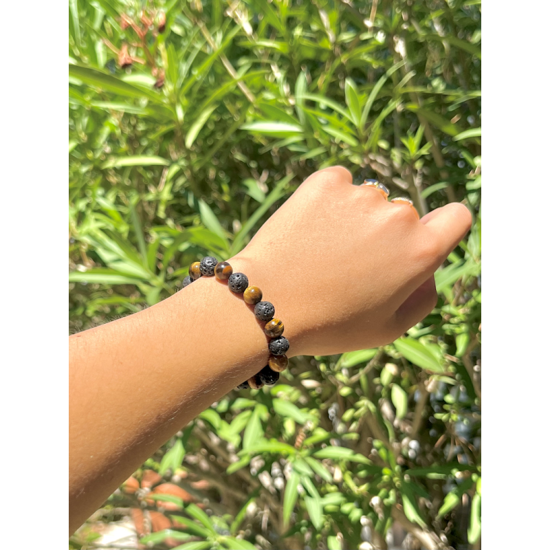 L'association de la pierre de lave et Oeil de tigre permet de coupler les effets :
