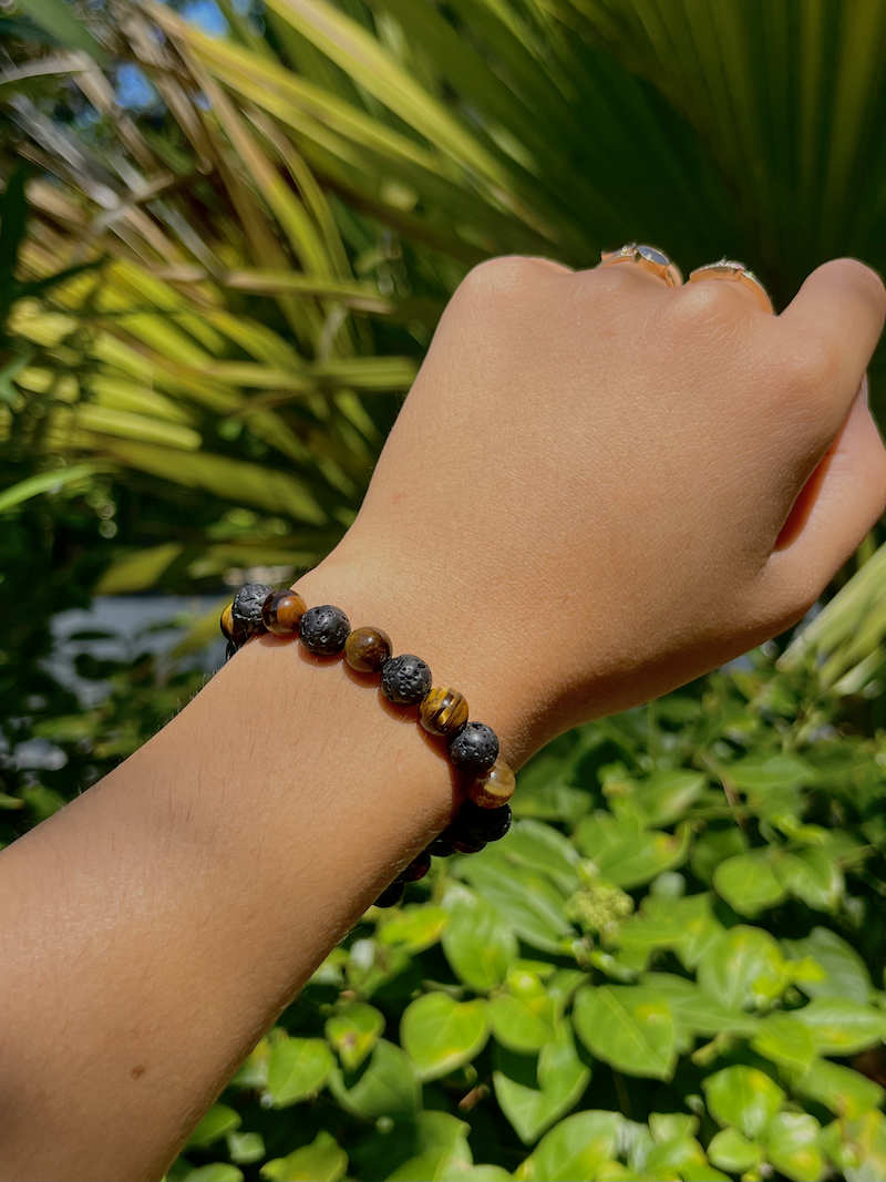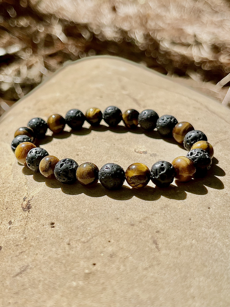 Bracelet Pierre de lave & Oeil de Tigre 1mix - 8mm