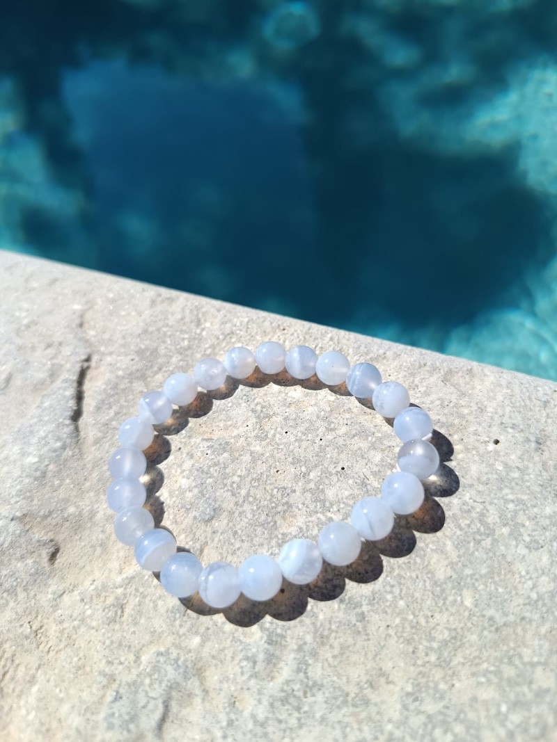 Bracelet Calcédoine 8 mm - Qualité AA - Pierre de communication, de calme et de confiance