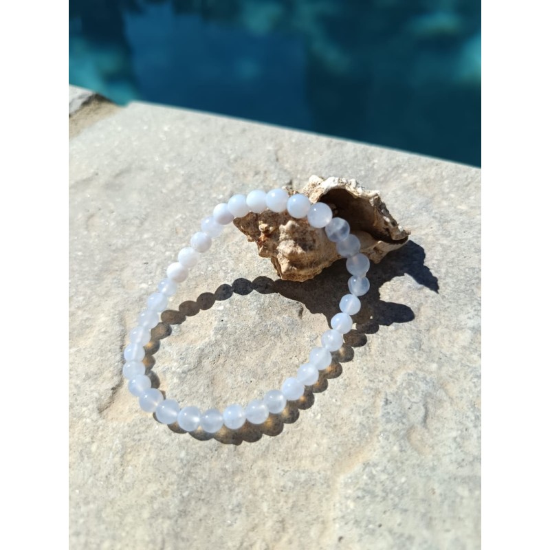 Bracelet Calcédoine Naturelle 6mm- Pierre de Sérénité et Communication Positive