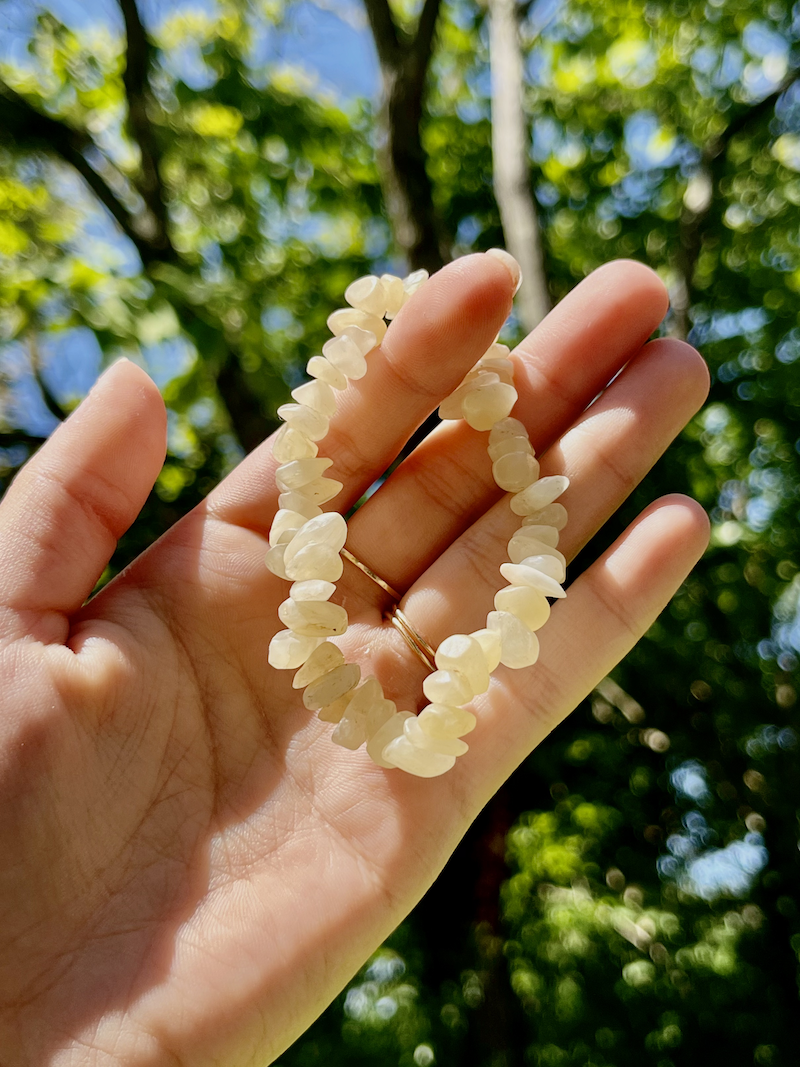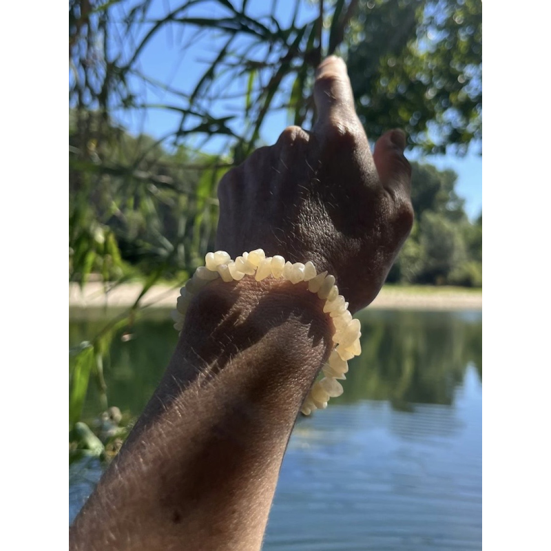 Le bracelet en Aragonite perles chips est un bijou raffiné et authentique, idéal pour celles et ceux qui recherchent à la fois un accessoire élégant et un soutien énergétique au quotidien. Sa composition en perles chips naturelles met en valeur la beauté brute de la pierre, avec des teintes allant du beige doux au miel lumineux.